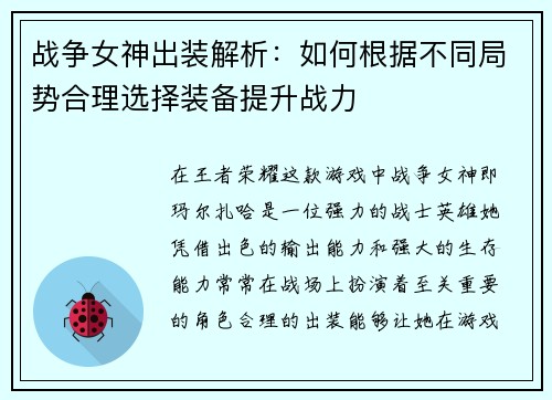 巨魔英雄在许多游戏中,特别是《Dota 2》这类多人在线竞技游戏中,都是非常强力的角色之一。凭借其高爆发、优秀的恢复能力和强大的控制技能,巨魔成为了许多玩家心目中的理想选择。而在对巨魔进行出装时,如何才能让他在对战中立于不败之地,发挥出最大的战力,是许多玩家追求的目标。本篇文章将围绕“巨魔英雄出装全...