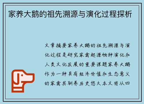 家养大鹅的祖先溯源与演化过程探析